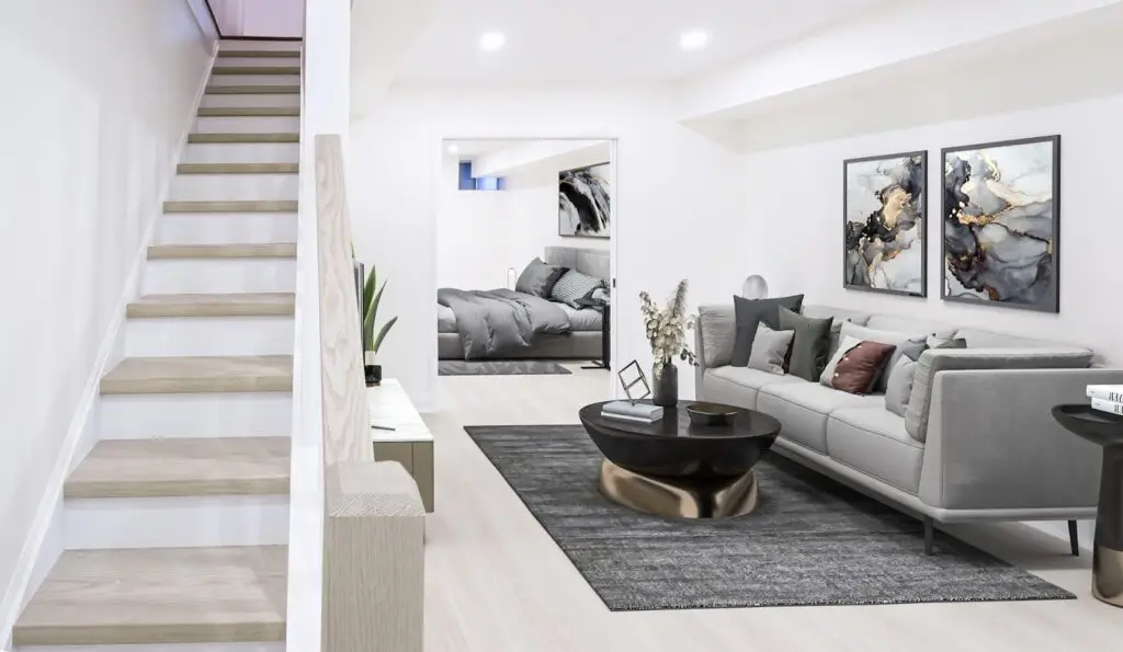 The basement of your family home is an ideal space to create an immersive home entertainment center, a family playroom, extra bathrooms, and guest bedrooms. Consider adding a complete in-law suite with its own bathroom and kitchen for added convenience and privacy. Beyond plumbing, heating, and electrical systems, HomeHorizons recommends soundproofing the basement ceiling with fiberglass insulation, which acts as a thermal barrier and provides excellent sound dampening. This thoughtful approach ensures comfort, privacy, and a cozy environment for your newly renovated basement.